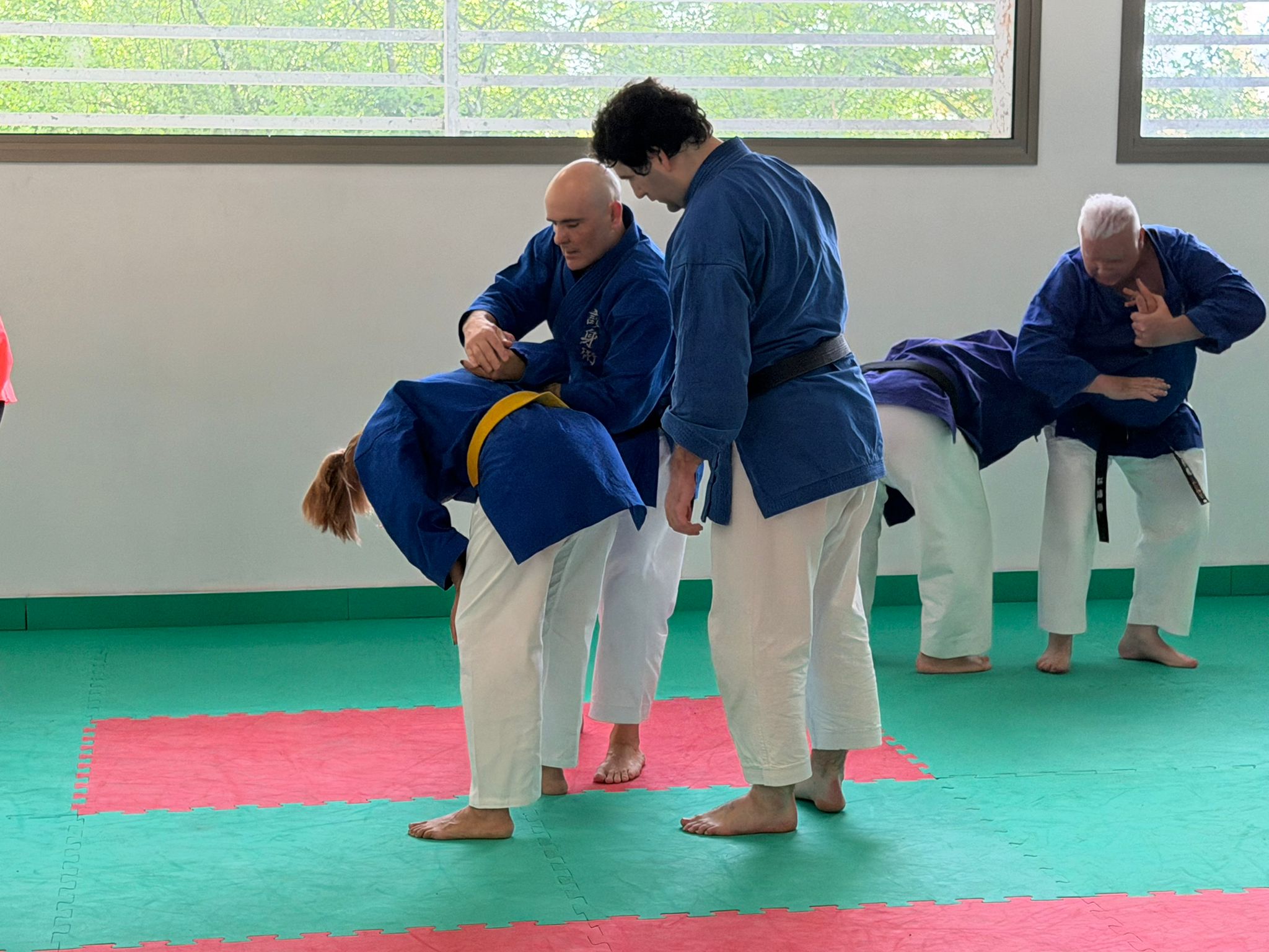 La sesión estuvo centrada en el trabajo de Ude-Kata Kansetsu Waza (técnicas de luxación de codo y hombro).